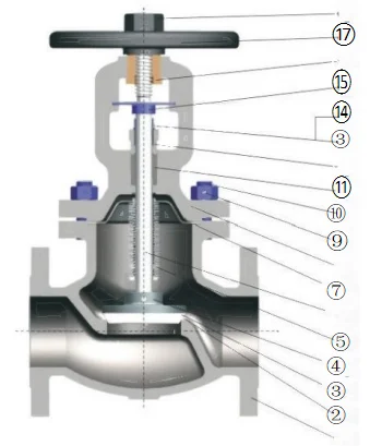 1. The bellows-sealed stop valve, whose key component is the metal bellows, is automatically rolled welded with the valve stem assembly at the lower end and the connecting plate at the upper end, forming a metal barrier between the fluid medium and the atmosphere to ensure zero leakage of the valve stem.